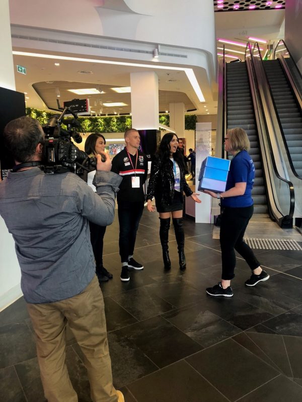 Telstra staff pose with celebrities