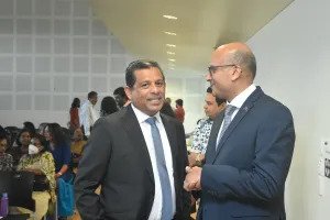 Nazli Farook on left and Dr Charitha Perera chatting in the course of the evening (with no signs of harrassed pressure).