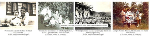 When Vivian left Sri Lanka in 1972, he did so with great regret. However, his strongly positive demeanour and impressive characteristics stood him in good stead in his new, and very different, life in Perth, West Australia. His work ethic, natural leadership ability, sense of self-esteem, family pride and ability to mix easily with people from all walks of life defined him right to the end of his days. A man who seemed to stand taller than everyone else around him – and not just in a physical sense – he was certainly one of the tallest poppies of his era. His speedy ascent through the ranks of Scottish Tea and Lands reflected not only his dedication to individual excellence and his sense of duty but also his ability to marshal and manage others. He was well served by a natural unstudied charm that never failed to engage bosses, peers and subordinates alike. He was modest about his achievements as he remembered his “most enjoyable career” as a planter. As his daughter, I remember him as a consummate gentleman, the proud head of our family, a friend to all.