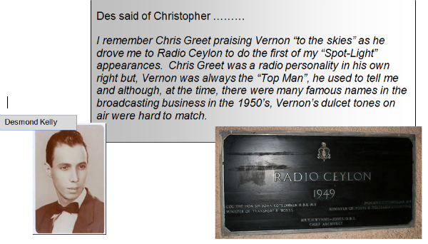 Below is an extract from an email / letter from Des Kelly to Neil Caves telling about Christopher’s time on Ceylon Radio