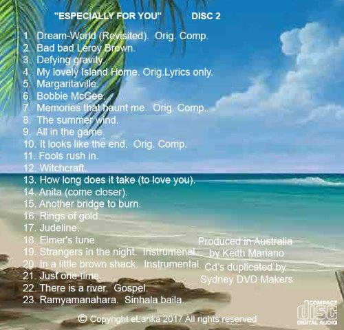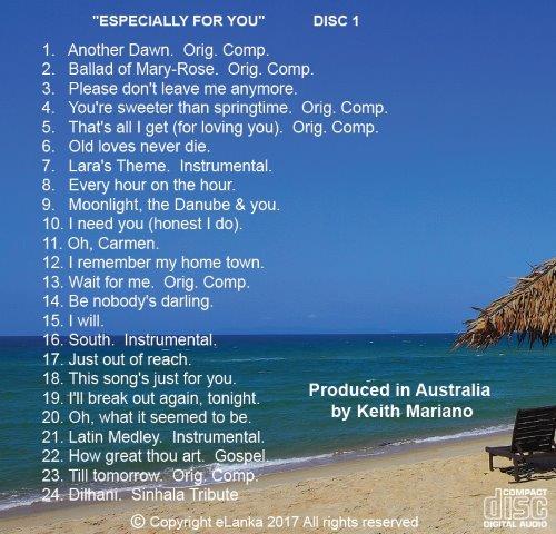 “Especially for you” my friends & fans everywhere, proudly presented by eLanka & “your’s truly”, a series of CDs featuring songs I have hand-picked from the hundreds I have sung, composed & recorded over all these years. Each “single” CD contains at least 20 songs. Additional ones are just a bonus.