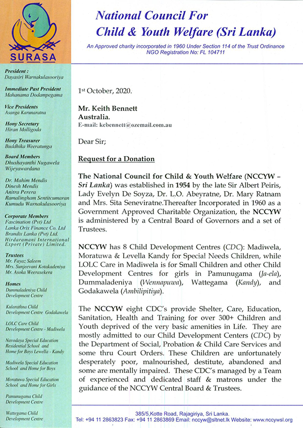 Articles National Council For Child & Youth Welfare(Sri Lanka) Last updated: October 1, 2020 12:29 pm By eLanka adminByeLanka admin Share 0 Min Read SHARE National Council For Child & Youth Welfare(Sri Lanka) More Read The Huseins and Their Historic Mansions in the Fort, Galle Sydney Resident members of The Institute of Chartered Accountants of Sri Lanka hosts the traditional “Chartered Ball” at The Epping Club – 27 September 2025 eLanka Newsletter -12th October 2025 – 2nd Edition – Sri Lankans In Australia TAGGED:Child & Youth Welfare Share This Article Email Copy Link Print Previous Article SRI LANKA NEWS – SEPTEMBER 2020 – By Victor Meldor Next Article Nadanna Mage Sihine-Erandi Heshani ft. Raj Thillaiyampalam FacebookLikeYoutubeSubscribeLinkedInFollow Most Read “A PICTURE SPEAKS A 1000 WORDS” – By Des Kelly A Life Hack for when we’re Burnt Out & Broken Down – By Uma Panch Narration of the History of our Proud Ancestral (Orang Jawa) Heritage. by Noor R. Rahim eLanka Marriage Proposals Noel News Noel News- By Noel Whittaker EILEEN MARY SIBELLE DE SILVA (nee DISSANAYAKE) – 29 September 1922 – 6 April 2018 – A Woman of Value an Appreciation written by Mohini Gunasekera K.K.S. Cement Factory Dr.Harold Gunatillake’s 90th Birthday party Cricket: Sri Lanka’s women’s squad in Melbourne - Advertisement -