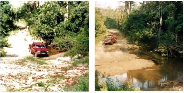 Above: The location of the old fortress, strategically placed at the entrance to the Canyons of Makaré – the ‘Mouth of the Dragon’. The names of the streams not named on the Survey Department’s 1”:1mile map have been entered by hand by the Author, based on his tracker’s local knowledge. The jungle trackers who wander the talawa have names for each and every stream and rock outcrop as they are the navigational waypoints in the trackless talawa.