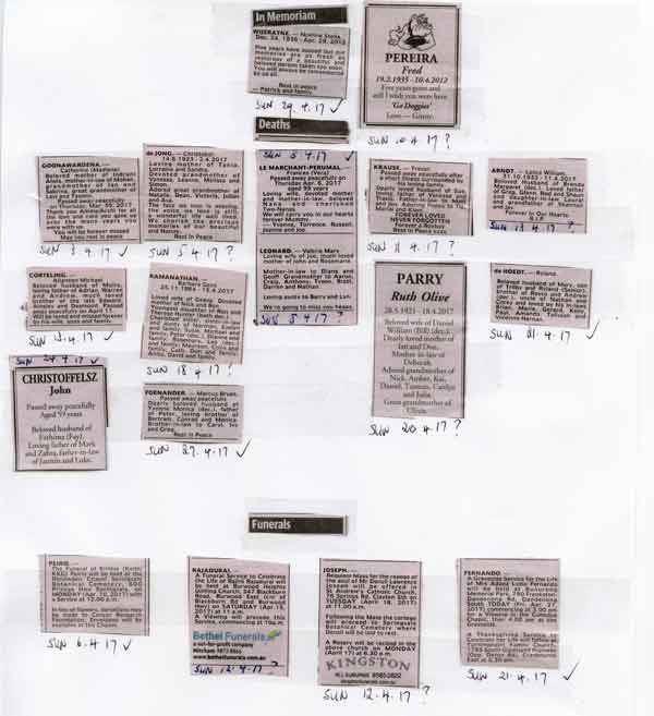 Articles Obituaries – APRIL 2017 Last updated: May 1, 2017 5:44 pm By admin Share 0 Min Read SHARE Obituaries – APRIL 2017 TAGGED:Obituaries - APRIL 2017 Share This Article Email Copy Link Print Previous Article Top 50 Most Streamed Songs Of All Time on Spotify (2017) Next Article Sri Lankan OBITUARIES – Compiled by Victor Melder FacebookLikeYoutubeSubscribeLinkedInFollow Most Read “A PICTURE SPEAKS A 1000 WORDS” – By Des Kelly A Life Hack for when we’re Burnt Out & Broken Down – By Uma Panch Narration of the History of our Proud Ancestral (Orang Jawa) Heritage. by Noor R. Rahim eLanka Marriage Proposals Noel News Noel News- By Noel Whittaker EILEEN MARY SIBELLE DE SILVA (nee DISSANAYAKE) – 29 September 1922 – 6 April 2018 – A Woman of Value an Appreciation written by Mohini Gunasekera K.K.S. Cement Factory Dr.Harold Gunatillake’s 90th Birthday party Cricket: Sri Lanka’s women’s squad in Melbourne - Advertisement -