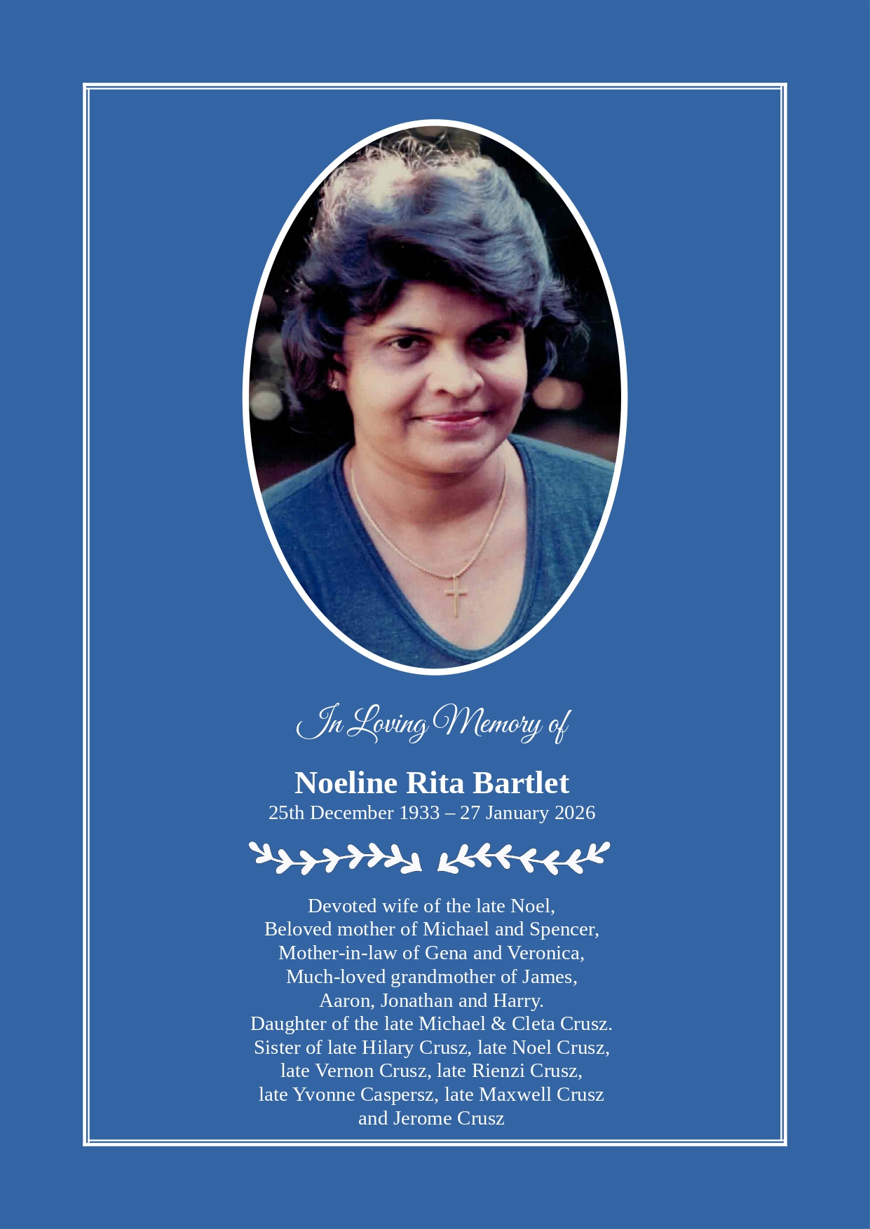 Noeline Bartlet Obituary Notice