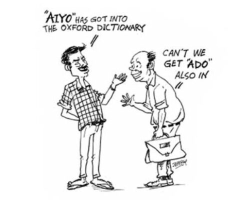 However insufferable English-English is, and despite these hiccups in I will not use a sufferable lingo such as Urdu or Esperanto, I’ll continue to hiccup in Singlish, the local dialect of the Queen’s English. However we Lankans are claimed to be high on English literacy scale, and our debt to papa Shakespeare must be acknowledged. And now that our word “Aiyo is in the Oxford English Dictionary, I might be permitted to greet the old Bard Bill Shakespeare with another common Sinhala word “Ado” and say to Bill patting him on his back, “Ado Bill, Sinhala is now in the world’s English”.