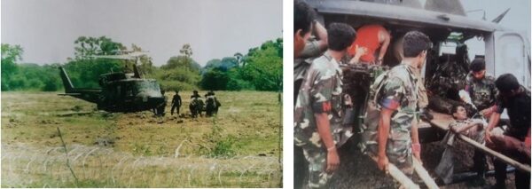 So the helicopter, emitting loud noises and vibrating very badly, proceeded slowly to Palali. The pilots skirted close to Thondaimannar army camp, intending to land at Thondaimannar if the aircraft’s performance suddenly worsened. But the Bell-212 kept on flying and they finally managed to struggle back to Palali and land safely.
