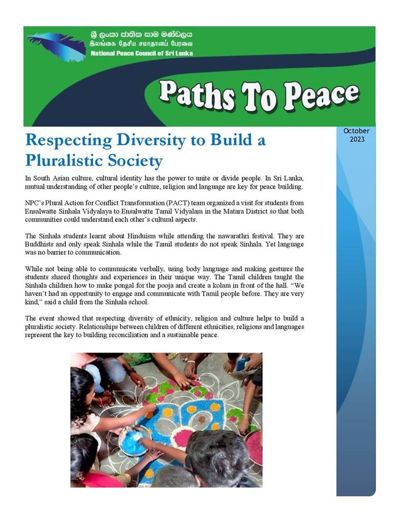 Articles Paths to Peace – October 2023 Last updated: November 10, 2023 4:49 pm By eLanka adminByeLanka admin Share 0 Min Read SHARE Paths to Peace – October 2023 TAGGED:Paths to Peace - October 2023 Share This Article Email Copy Link Print Previous Article SRI LANKAN (BORN) WHO SERVED IN VIETNAM – Looking for More Names Please – Sent to eLanka by Victor Melder Next Article A Campaign Against Sledging & Intimidation on the Cricket Field-by Michael Roberts FacebookLikeYoutubeSubscribeLinkedInFollow Most Read “A PICTURE SPEAKS A 1000 WORDS” – By Des Kelly A Life Hack for when we’re Burnt Out & Broken Down – By Uma Panch Narration of the History of our Proud Ancestral (Orang Jawa) Heritage. by Noor R. Rahim eLanka Marriage Proposals Noel News Noel News- By Noel Whittaker EILEEN MARY SIBELLE DE SILVA (nee DISSANAYAKE) – 29 September 1922 – 6 April 2018 – A Woman of Value an Appreciation written by Mohini Gunasekera K.K.S. Cement Factory Dr.Harold Gunatillake’s 90th Birthday party Cricket: Sri Lanka’s women’s squad in Melbourne - Advertisement -