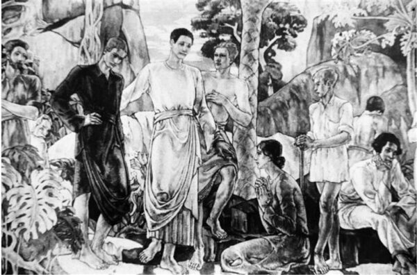 The final works of art were the four marvellous murals painted by David Paynter O.B.E, a Member of the Royal Academy, and an old pupil of Trinity, who began his labour of love in 1929 when only the side chapel was roofed and completed. The murals as seen today are all in his own inimitable style, and though the scenes are Biblical, they have a tropical colour and a unique local setting to match the Kandyan architecture itself.