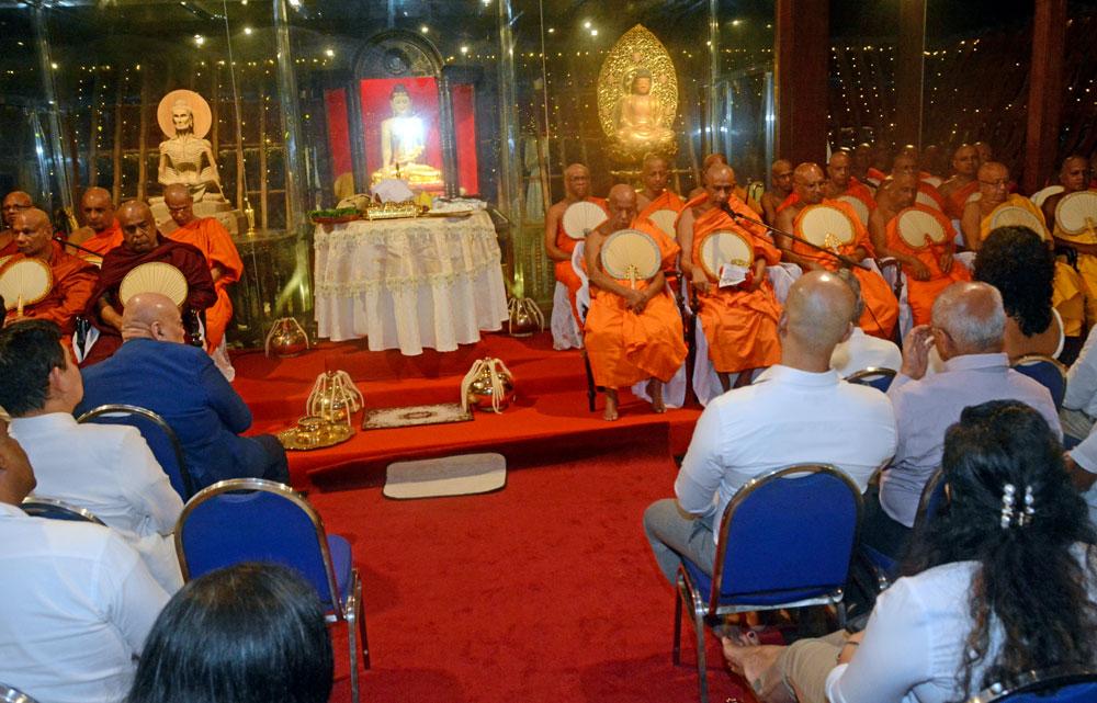 A Pirith sermon was held yesterday at the Seemamalakaya of the Gangaramaya Temple in Hunupitiya, seeking blessings for the people affected by floods and landslides caused by Cyclone Ditwah, and offering prayers for all those who lost their lives. Pic by Sumudu Hewapathirana.
