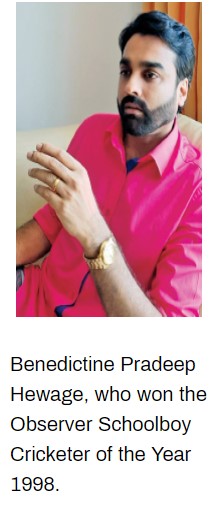 Pradeep Hewage, who won the Observer Schoolboy Cricketer of the Year 1998, was a superb batsman during his days. “Those were the lovely days, we only thought of our school and played for its success,” said Hewage in an exclusive interview with the writer.
