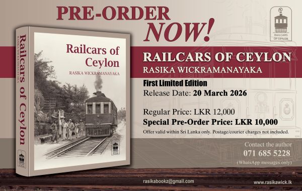 Articles ‘Railcars of Ceylon’ Ready for Pre order Last updated: March 15, 2026 7:24 pm By eLanka adminByeLanka admin Share 0 Min Read SHARE Views: 10 ‘Railcars of Ceylon’ Ready for Pre order Click here to receive your free copy of the eLanka Newsletter twice a week delivered directly to your inbox! Share This Article Facebook Whatsapp Whatsapp LinkedIn Email Copy Link Print Previous Article Warm Birthday Wishes to The Chairman, Blue Ocean Group of Companies – Mr. Sivarajah Thumilan Next Article TOXIC WAR AND GRIM UNRESOLVED CLIMATE CRISIS-by N.S.Venkataraman FacebookLikeYoutubeSubscribeLinkedInFollow Most Read “A PICTURE SPEAKS A 1000 WORDS” – By Des Kelly A Life Hack for when we’re Burnt Out & Broken Down – By Uma Panch Narration of the History of our Proud Ancestral (Orang Jawa) Heritage. by Noor R. Rahim eLanka Marriage Proposals Noel News Noel News- By Noel Whittaker EILEEN MARY SIBELLE DE SILVA (nee DISSANAYAKE) – 29 September 1922 – 6 April 2018 – A Woman of Value an Appreciation written by Mohini Gunasekera K.K.S. Cement Factory Dr.Harold Gunatillake’s 90th Birthday party Cricket: Sri Lanka’s women’s squad in Melbourne - Advertisement -