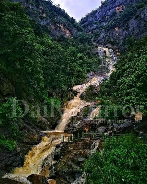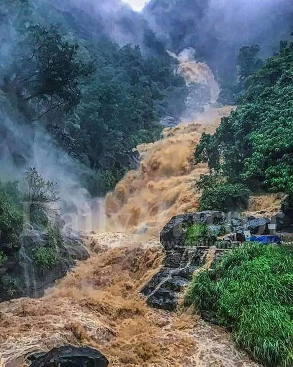 The heavy rains experienced in the Uva Province had given the beautiful Ravana Falls a new colour mixed with muddy water.