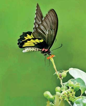 The forest has a display of numerous species of dragonflies, freshwater crabs, bugs, beetles and butterflies (as shown in the photograph reproduced here) that inhabit the forest from its green carpeted floor to the leafy canopy