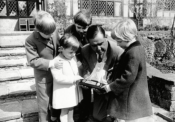 Graham Cowdrey and his siblings look at the Wisden Trophy won by his famous father Colin