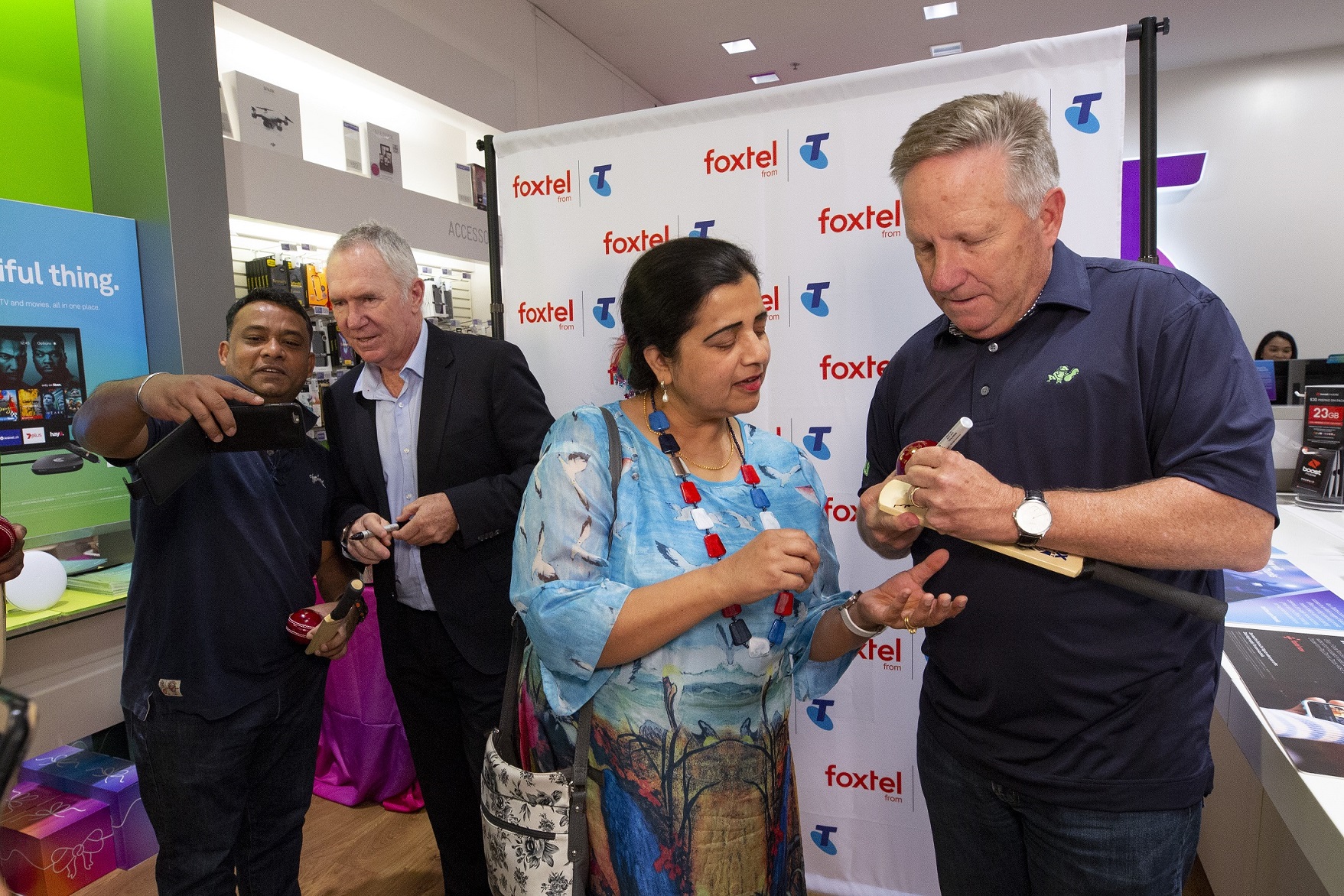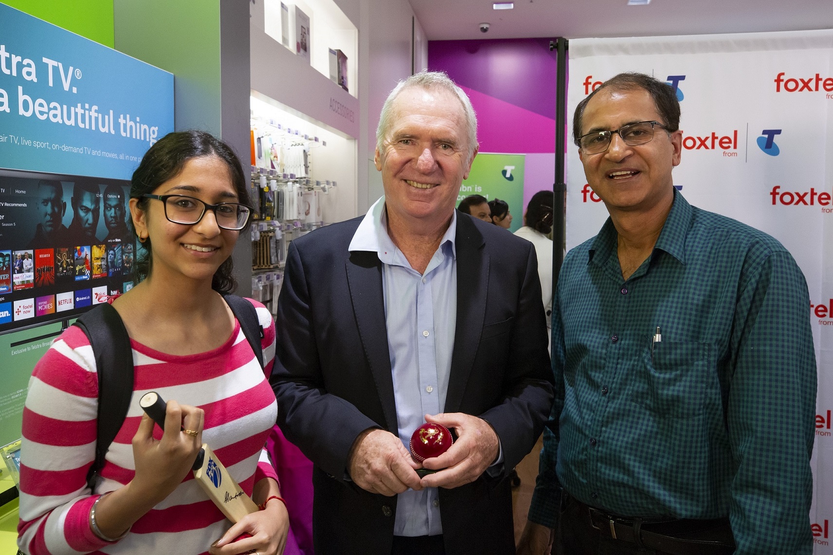 Sporting greats and FOX CRICKET commentators Allan Border and Ian Healy joined Telstra’s Executive for Retail Sales and Service Steve Long at the Telstra Parramatta Store over the weekend to celebrate Diwali, and the launch of the Foxtel cricket in 4K Ultra High Definition.