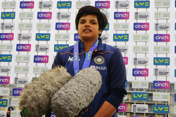 Shafali Verma speaks to the media after the Test draw. Photograph: Ashley Allen/Getty Images |