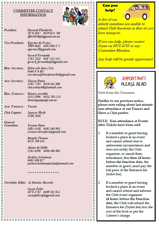 Silver Fawn Club Inc – Social and Sports Club – Brisbane – May-June 2018 Newsletter