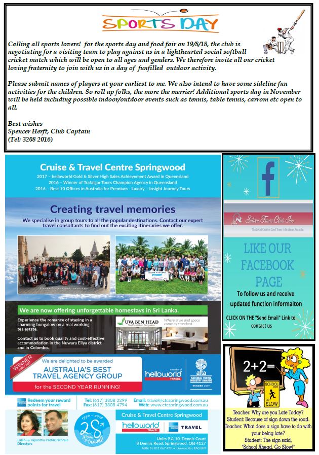 Home » Blog » Articles » Silver Fawn Club Inc – Social and Sports Club – Brisbane – May-June 2018 Newsletter