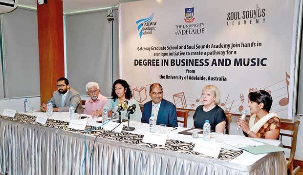 The Gateway Graduate School and Soul Sounds Academy in collaboration with the University of Adelaide, Australia are presenting students with a novel opportunity to study both business and music as an undergraduate degree. To honour this collaboration an MOU was signed on September 20. Finally those who have dreamed of pursuing music for their higher studies have the opportunity to study it with business at one of the top ranked universities in the world. Their first year of studies will take place in Sri Lanka and on successful completion of this phase, students will receive an international diploma in business and will also qualify to go into the second year of undergraduate studies at the university of Adelaide, whereby they will be able to complete a degree in business and music.