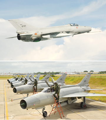 In 1991, the country did not have fighter pilots. The fighter pilots who had flown the Mig 15 and 17 were also not available at that time. The Airforce was required to convert the fighter pilots. Squadron Leader Harsha Abewickrama who eventually commanded the Airforce, Flight Lieutenant Priyantha Gunasinghe, who became a group captain, Flight Lieutenant Sudarshana Pathirana, by now the Commander of the Airforce, Flight Lieutenant Janaka Wijethilaka and Flying Officer Sanjeewa Hendawitharana, lately a group captain have been the live wire of the No. 5 Squadron whose service is a sine-qua-non for the security of the country’s air space.