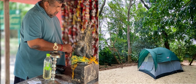 At Kuda Kedillitha God Kataragama temple on the banks of Kubukkan Oya and My tent at banks of Kubukkan Oya at Eda Kubuka camp site |
