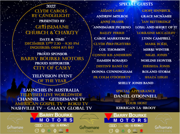Welcome to Gethsemane’s 2022 ‘Clyde Carols By Candlelight’ Television Spectacular which attracted over a million viewers last year.