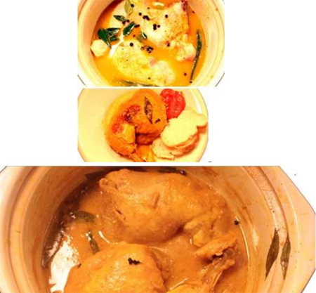 Put the chicken Maryland in a clay pot (if available for flavour) or in a pan. Add the salt, curry leaves and Rampe and let it sit for at least 30 minutes.