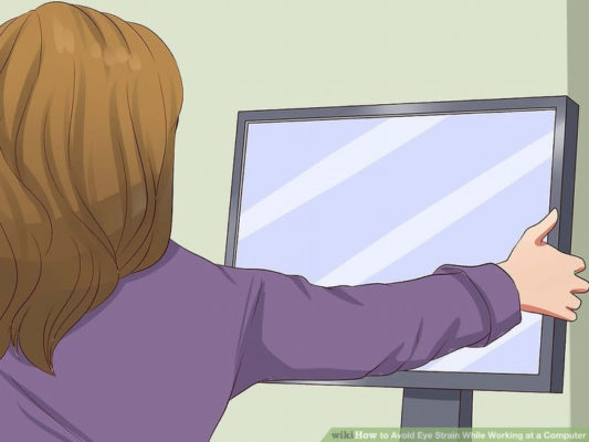 Wipe down your screen daily with an anti-static solution sprayed onto a cloth. This will clean electrostatic particles off your screen, preventing them from pushing dust toward your eyes (which causes irritation and strain). Cleaning your screen also helps to reduce glare.