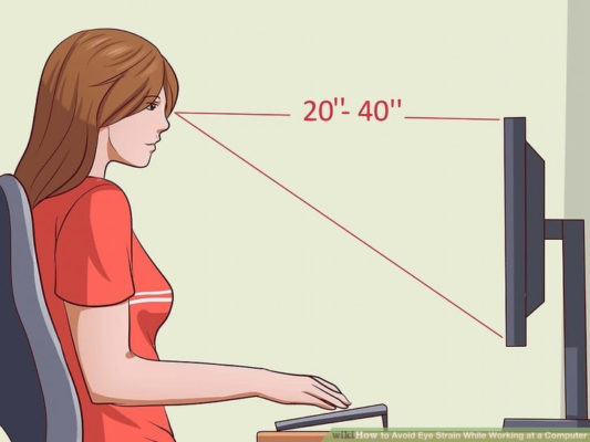 Your face should be between 20 and 40 inches away from the screen when using a computer. Although it might seem like this will make your eyes work harder, they’ll actually be relaxed at this distance. You can also consider using a larger screen or increasing the font size on your computer to improve this.