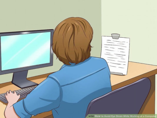 Repeatedly shifting your eyes (unless it’s for exercise purposes) when using a computer can actually increase eye strain. You can avoid shifting your eyes by buying a stand for your books and papers so that you can reach for them easily. Touch-typing is also a great skill to have in order to avoid having to take your eyes off your screen while working.