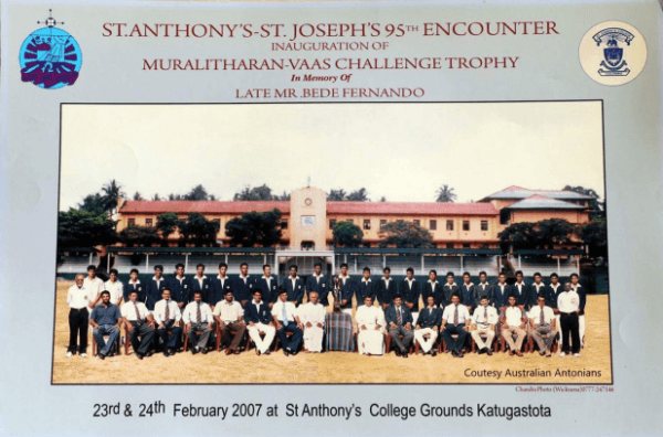 The two schools have produced cricketers of the highest class with several going on to represent Sri Lanka. The most legendary of them all, Muttiah Muralitharan and Chaminda Vaas are proud products of SACK and SJC respectively. They had the distinction of ‘carrying’ the Sri Lankan attack in over 100 tests and 300 ODIs, with a combined wicket tally of 1155 in Tests and 934 in ODIs. It was only fitting, when brothers Theo and Pradeep Fernando (both from SACK) came forward in 2007 to donate an impressive trophy named after the two Lankan legends in memory of their father, Bede Fernando, who was an old Josephian. To ensure the two schools received an equal share from the Fernando family, Pradeep’s son Viresh was educated at St Joseph’s College.