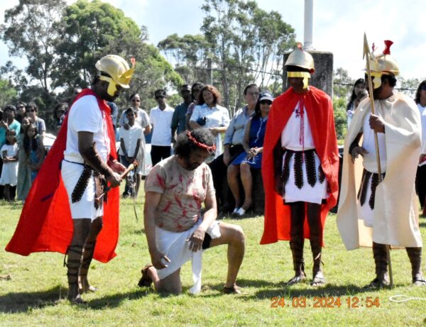 This Passion of Christ has been commemorated and re-enacted for two thousand years in various parts of the Christian world. In Sri Lanka, Passion Plays are commonly enacted in various Catholic towns – mostly along the western coast from Mannar in the North to Maggona in the South. The very realistic scenes of Jesus Christ being whipped, stripped and nailed to the cross are performed by casts of actors who year after year come together to re-live the Good Friday incidents of two thousand years ago. The scenes are so realistic that Catholic devotees pay solemn homage and are often seen weeping. It was such a performance that was presented by the Sri Lanka New South Wales Catholic Association (SLNSWCA) last Sunday at the grounds of the Mount Schoenstatt Shrine in Mulgoa.