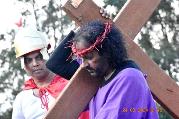 The entire performance brought together nearly 30 amateur actors playing the roles of Pontius Pilate, Roman high priests, Roman soldiers, Mary, Mary Magdalene, Veronica, The Apostles, Barabbas and the petty criminals plus make-up artistes, wardrobe stewards, prop stewards. The entire dialogue was performed by voice-actors with the Catholic Association choir providing choral back-up. The haunting musical score – including the sounds of thunder and earthquakes was choreographed by Malith de Silva and made the entire performance so realistic.