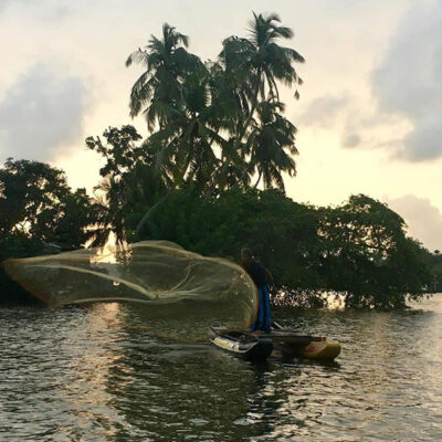 A more relaxing excursion is fishing on an ‘Oruwa’ – a traditional Sri Lankan fishing boat made entirely from wood, held in place with bamboo poles. They are hard to miss as the sight of local fishermen steering the rudders and casting their nets are very much a part of everyday life on the lake.
