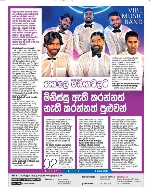 The Band members were university students who had formed the band during the covid-19 era. In Sri Lanka from time to time changes do happen in music groups. In the recent past the music group ‘Vibe Group” steered by ‘blind’  Milinda Pradeep initially was known from Hiru Star competition when he was placed among the top ten, had become popular also via ‘Tik Tok’  The new Sinhala song “Mata Bandinna Beha’ has gone viral in social media.All songs are sung by all as it is predominantly a voice band.Milinda Pradeep the leader who is blind is a competent table  exponent, in addition had been in the top ten in ‘Hiru Star’ .