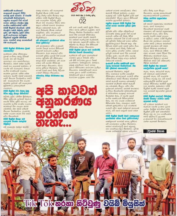 All six members of the ‘Vibe Music’ group have emerged from a popular reality competition having learnt music.. From a long time had been thinking of forming a music group. The members all are of the view to perform and sing differently not following any other music group to be observed as unique. The group have made a lot of ‘cover songs’, one of Samitha Mudunkotuwa’s , ‘Amuthuma Premayak’ song scripted by Dilan Gamage became viral in ‘Tik Tok’. The song of Jagath Wickremasinghe titled “Oba Ma Hamuwe Nam’ cover song too became viral on Tik Tok..