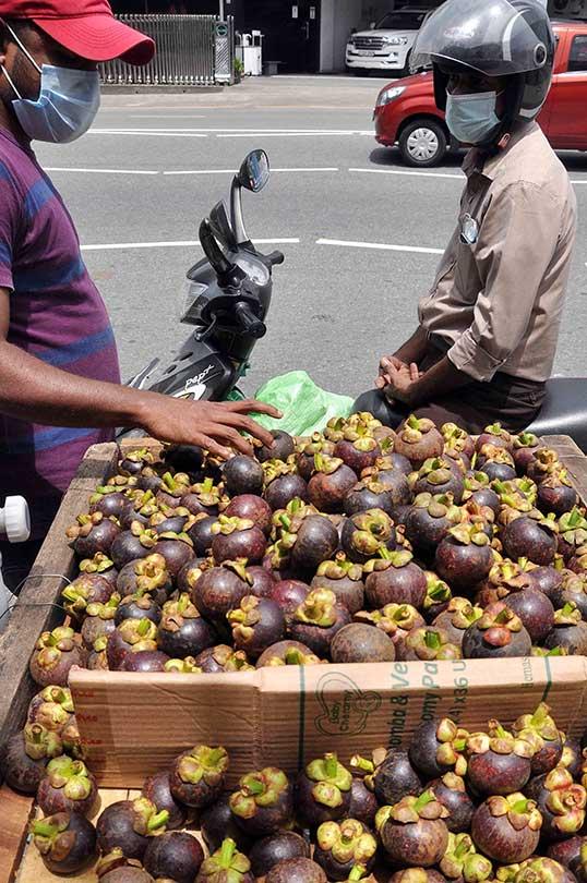 Street vendors in Colombo were seen selling some seasonal fruits like Durian, Rambutan, Mangosteen which are available in the months of July to September. Pix by Nisal Baduge