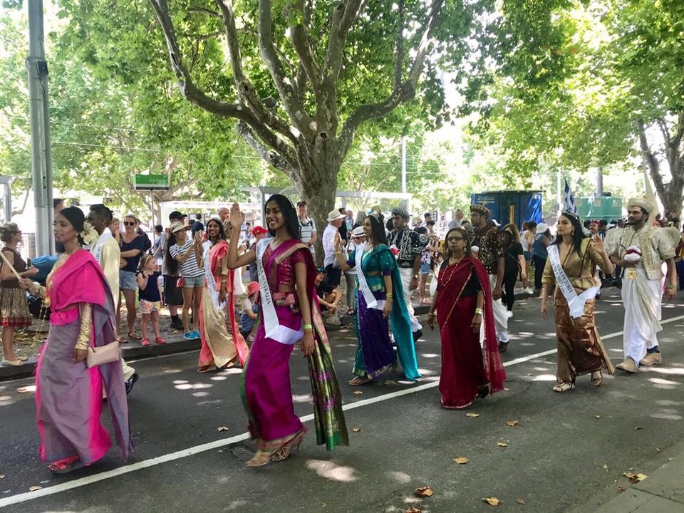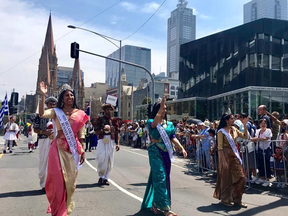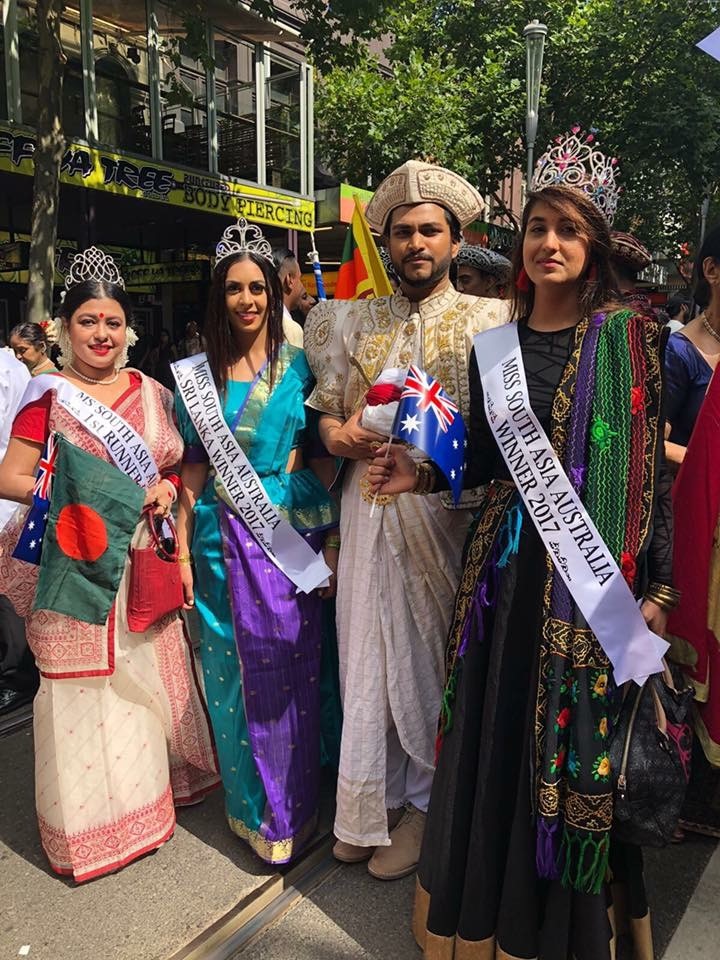 Participants of the Miss Sri Lanka-Australia Pageant (MSLA) and Miss South Asia-Australia Pageant (MSAA) 2017 provided a splash of colour when they marched in the Australia Day Parade on 26 January 2018 as a post-Pageant activity.
