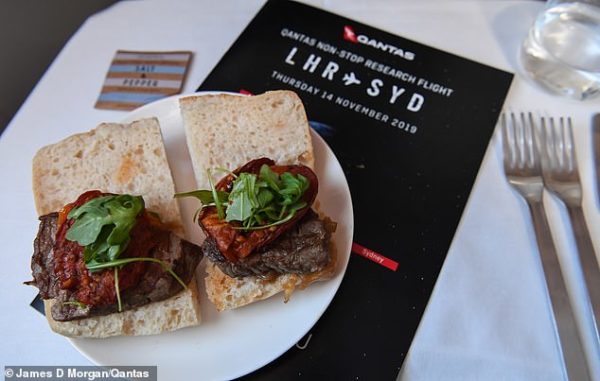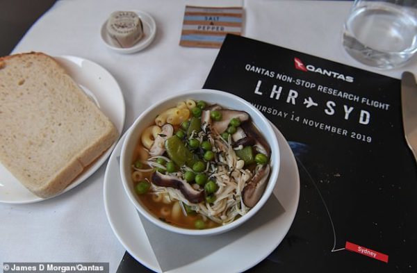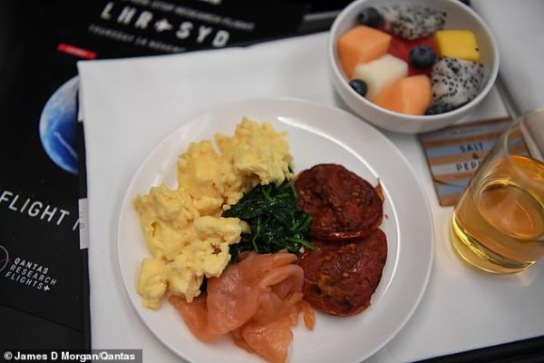 • The flight ran on Sydney time, meaning passengers had dinner in the morning