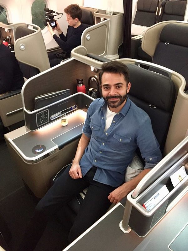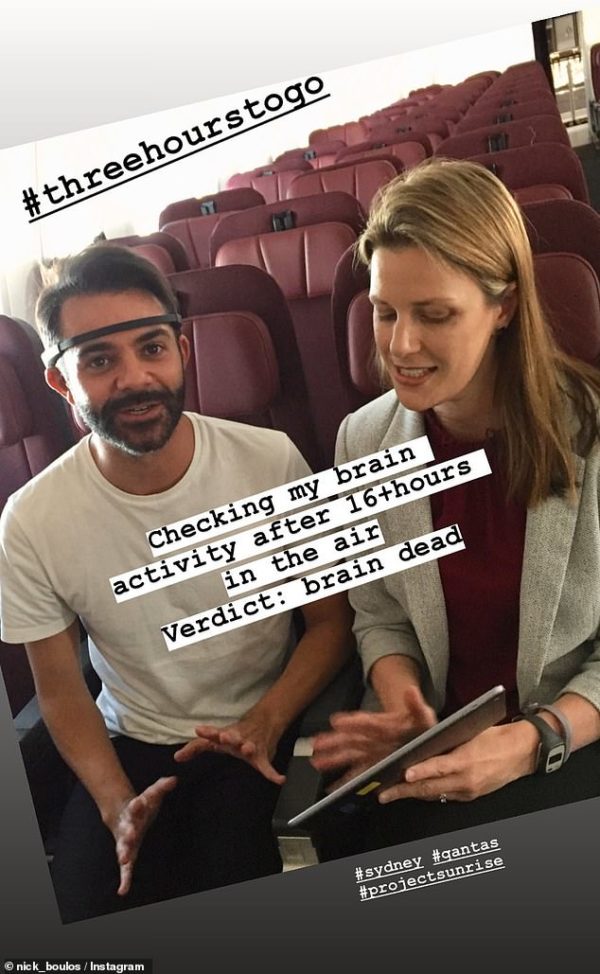 ‘The empty plane means there’s plenty of room first for walking circuits, then stretches and squats, to help invigorate bodies preparing for another 18 hours in the air,’ he wrote.