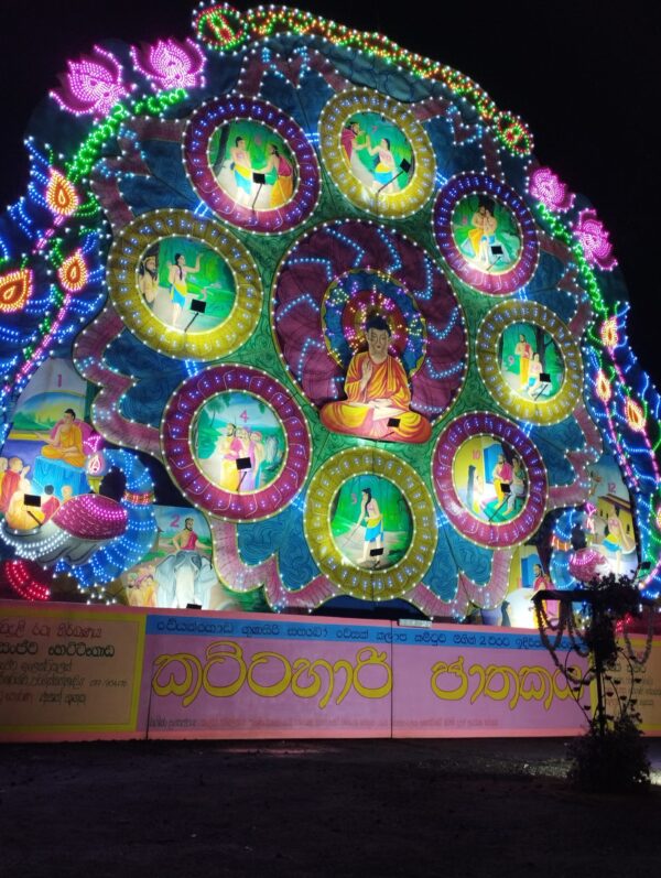 The tradition of Vesak Thoran dates back to ancient times when Buddhists used various means to commemorate and spread the teachings of the Buddha. Thoran, large, illuminated structures often depicting scenes from the Jataka tales (stories of the Buddha’s previous lives), have become an integral part of Vesak celebrations in Sri Lanka. These intricate structures are a testament to the artistic creativity and deep religious devotion of the Sri Lankan people.