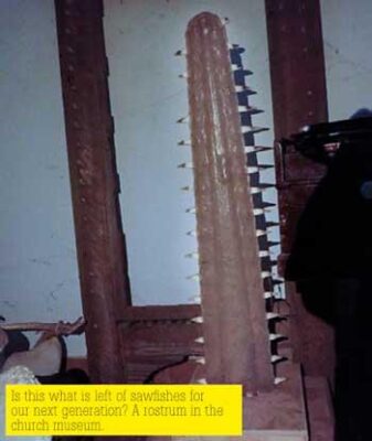 Our study also revealed the lack of cultural or traditional value for sawfishes. We did however encounter a sawfish rostra at St. Anne’s National Shrine (Thalawila) and Sinnagunduwa Church (Baththalangunduwa) where fishermen mentioned that their elders donated a rostra many years ago believing it would keep them safe at sea. Sadly, this luck was not transferred to the sawfishes.