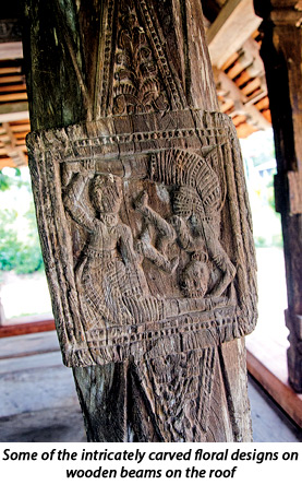 The pillars that held the humble roof of Panavitiya Ambalama were abundantly decorated. The nine inner pillars some six feet in height were so profusely carved that I almost held my breath. Exquisitely carved rectangular squares half way on the pillars showed wood carvings. The nineteen pillars that formed the outer posts were less elaborately carved. But displayed an elegance beyond compare.
