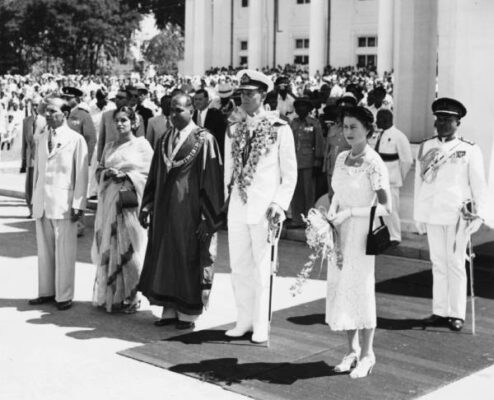 Rudra’s illustrious career had many highlights. The crowning moment was when he (and Mrs. Rudra) received Queen Elizabeth and her husband Prince Phillip on the Queen’s Commonwealth Coronation Tour.