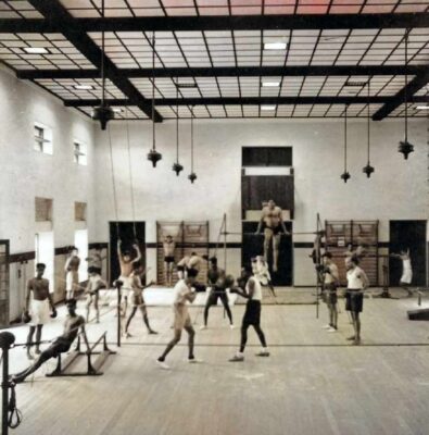 The Railway Institute had some gymnastics apparatus. The youthful aspirant seeing his chance to become strong, read books on physical culture and drew up his own course for body building.